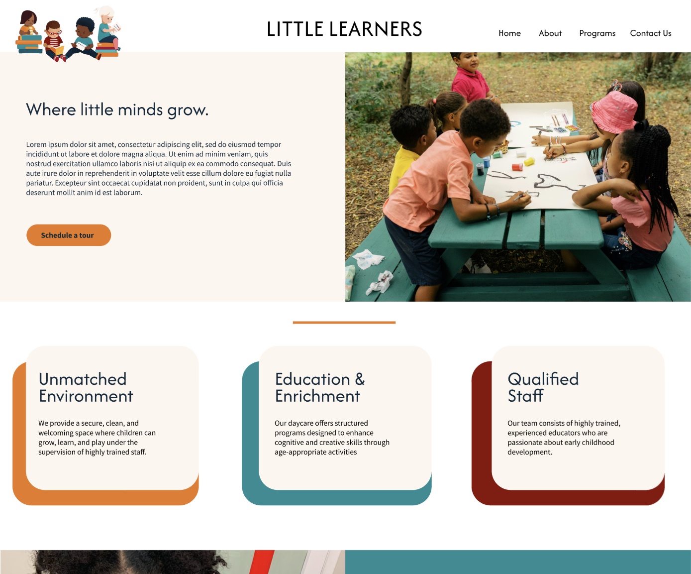 Overview:Design a website strategy that embodies the trust, care and service Little Learners provides to the children, parents and guardians.